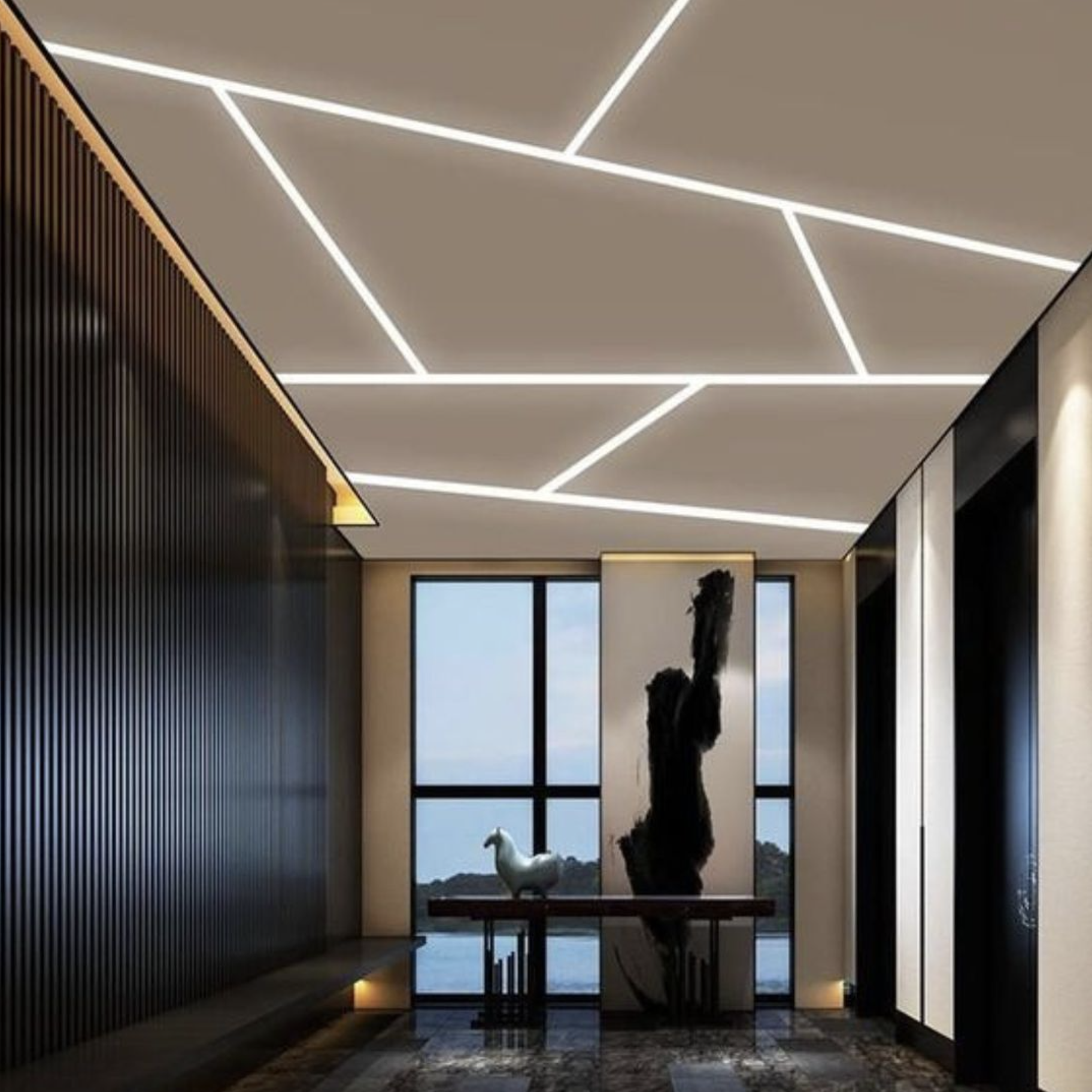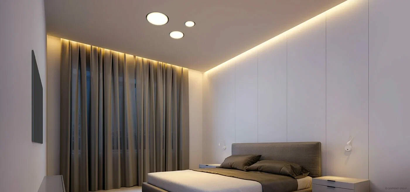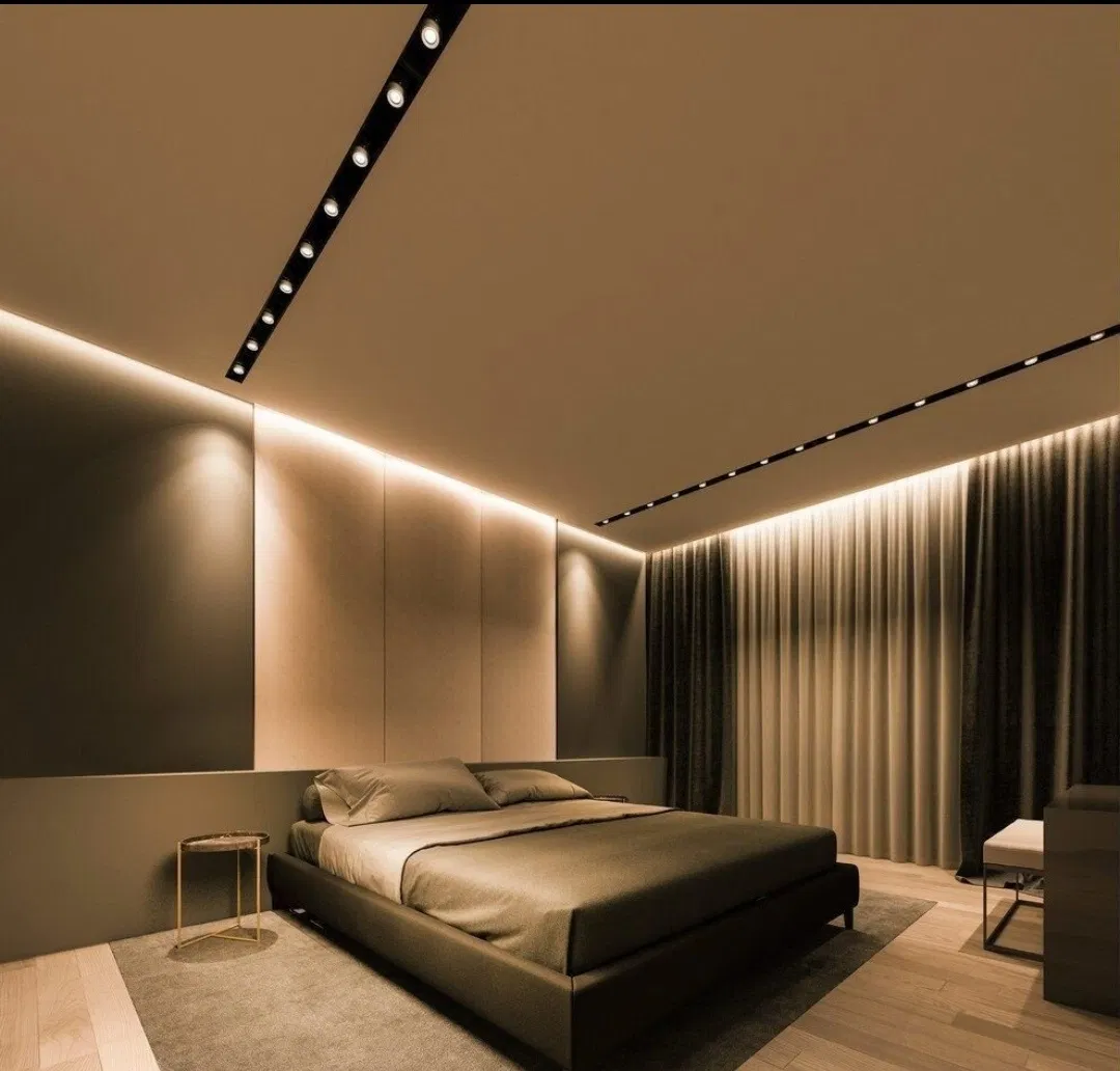 🌐 Зонирование пространства – световые линии визуально разделяют комнату без перегородок.;