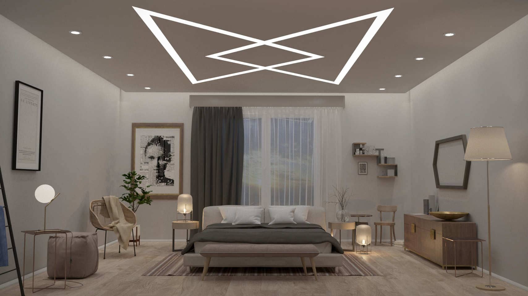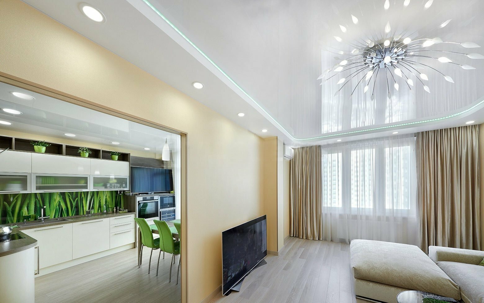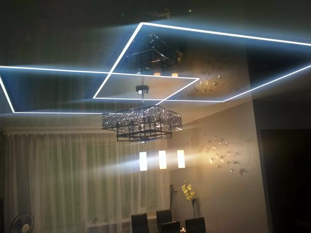 🌐 Зонирование пространства – световые линии визуально разделяют комнату без перегородок.;