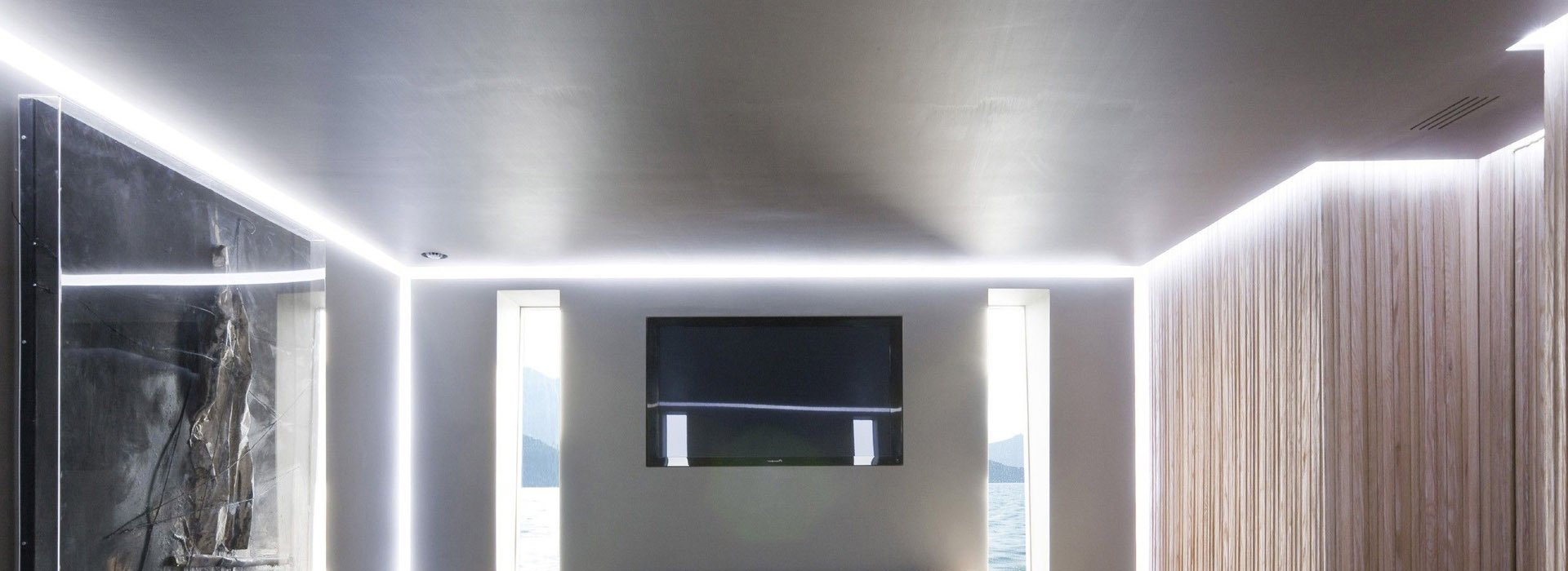 ✔ Завораживающий визуальный эффект – потолок будто парит в воздухе благодаря скрытой LED-подсветке по периметру;