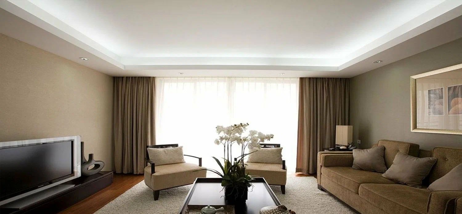 Парящий потолок с подсветкой – современное дизайнерское решение, создающее эффект «левитации» потолочной конструкции. Скрытая LED-подсветка по периметру визуально отделяет потолок от стен, добавляя интерьеру легкость и глубину. Идеально подходит для стилей модерн, хай-тек и минимализм.;