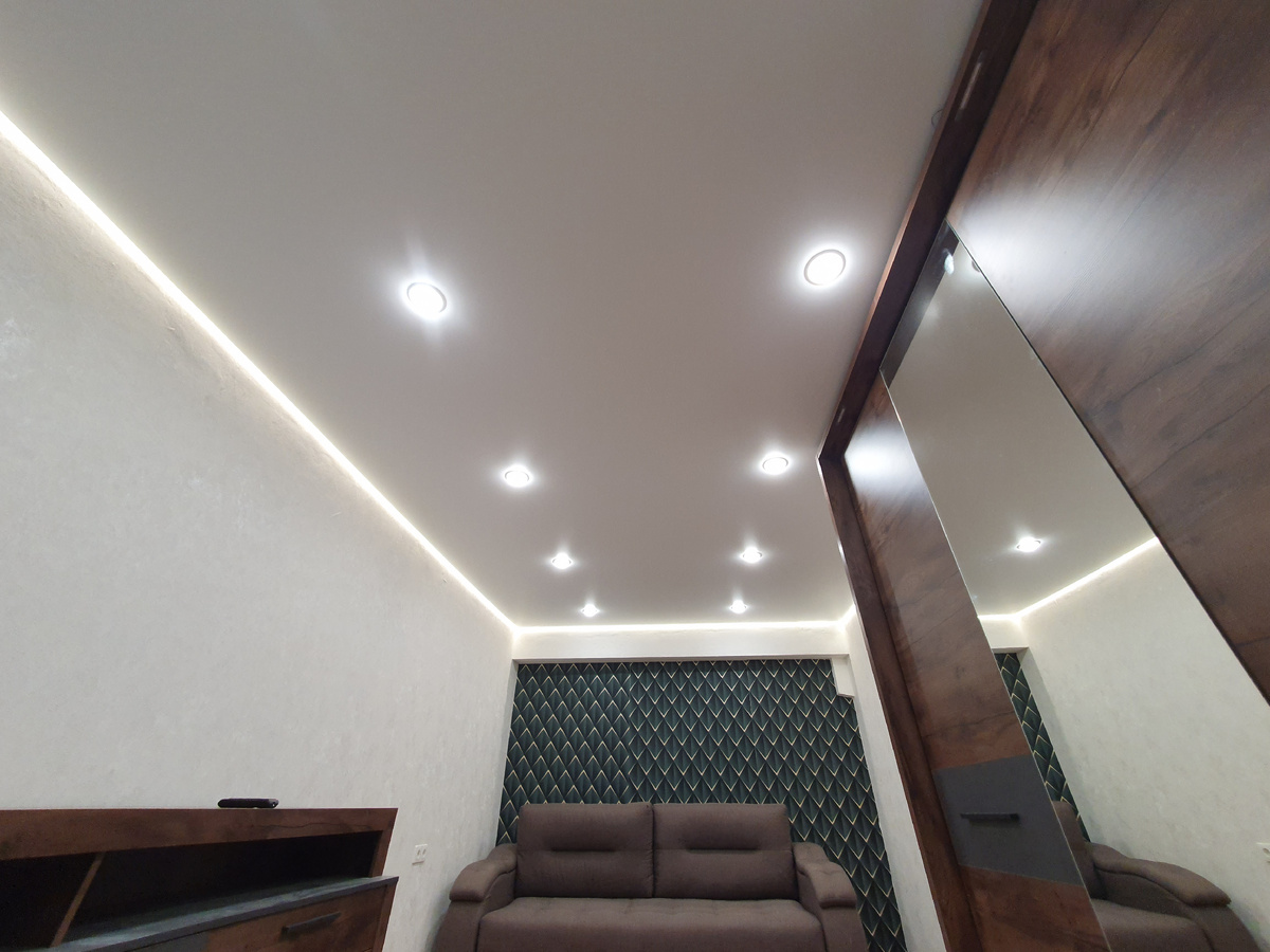 🔹 Гибкость дизайна – можно комбинировать с подсветкой, фотопечатью или матовыми/глянцевыми полотнами.;