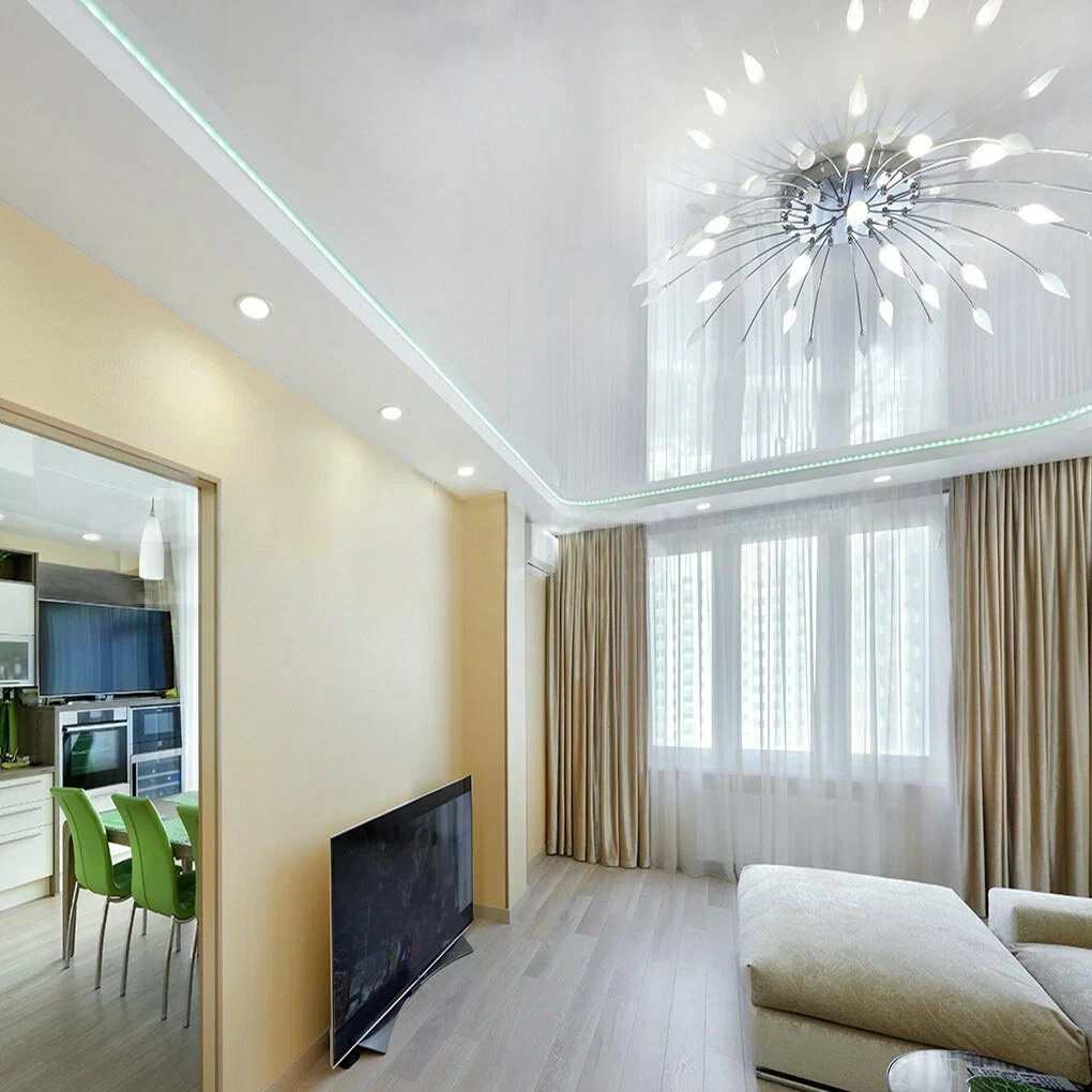 Применение: • Гостиные и спальни • Ванные комнаты и кухни • Торговые залы и салоны красоты Создайте эффектный интерьер с нашими глянцевыми потолками!;